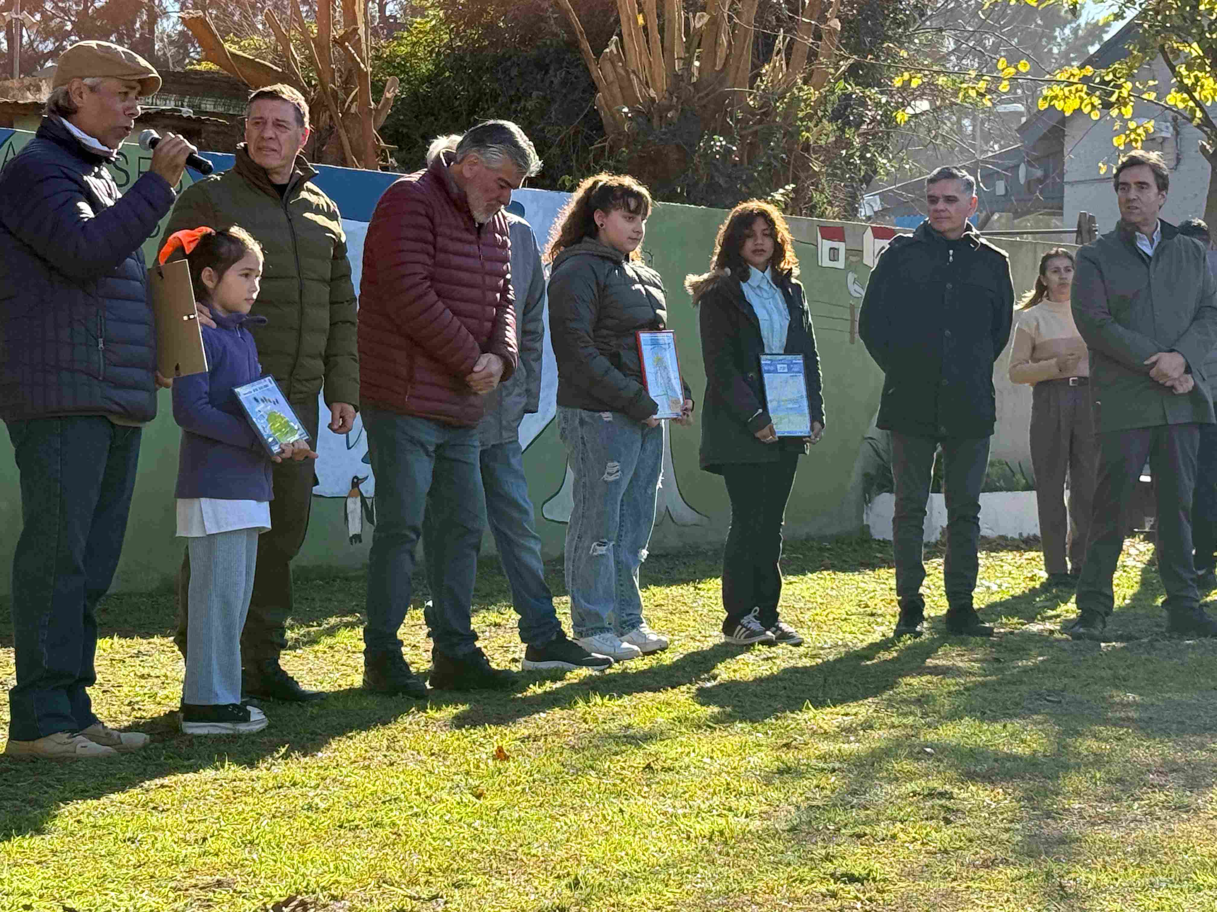 El Presidente del HCD César Siror, junto a los ediles Martín Curieses y Joaquín Martucci, participaron de la inauguración de un mural que hace historiografía sobre las Islas Malvinas, pintado en la plazoleta Rubén Torres, de la localidad de Open Door.