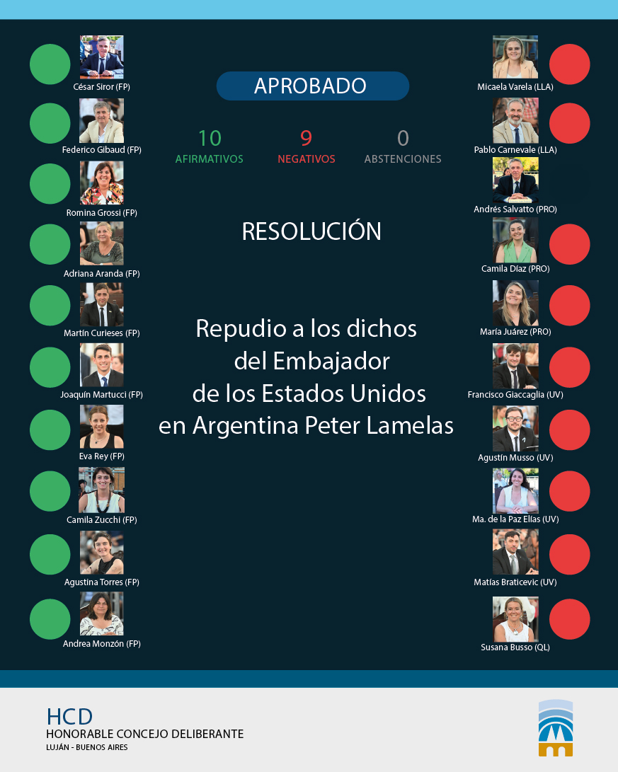 El HCD se manifestó en contra de las declaraciones realizadas por Lamelas durante su audiencia ante la Comisión de Relaciones Exteriores del Senado estadounidense, las cuales “constituyen una clara injerencia en los asuntos del Estado Argentino”.